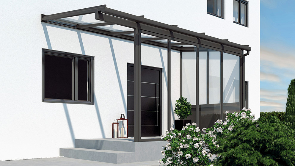 ELEGANCE, das klassische Terrassendach mit elegant filigraner Konstruktion ist durch die schlanke Bauweise besonders schön für kleine Terrassen und Balkone. Hier bietet der Dachüberstand idealen Wetterschutz. Mit den vielen Erweiterungsmöglichkeiten wie Festverglasungen, Fensterund Türelemente, lassen sich viele Wünsche erfüllen. Besonders filigrane Lösungen bietet unser Glas Fixx System. Zusätzlicher Sicht- und Sonnenschutz in Kombination mit unserem LED-Lichtsystem bedeutet für Sie höchsten Komfort und mehr Freiraum zu jeder Jahres- und Tageszeit.